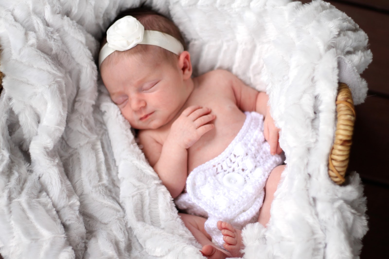 We cannot tell yet who she looks like yet. Her eyes seem to be bluer like Ryan's were as a baby, and her skin also seems to be lighter like his, but some of her features, like her nose and mouth, remind us of Natalie. It will be fun to see how she changes in the next few months and see who she ends up resembling more, or if she'll have her own look all together!